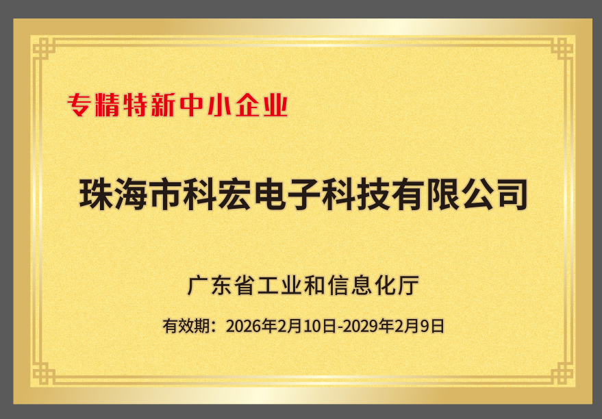 此次荣获“专精特新中小企业”称号,既是对公司过往发展成绩的高度认可,更是企业未来高质量发展的新起点。未来,珠海市科宏电子科技有限公司将继续坚守主业、深耕细分领域,持续强化技术创新、产品创新、服务创新,不断提升核心竞争力,聚焦行业需求,打造更多优质产品,努力发挥专精特新企业示范引领作用,为区域经济发展、行业智能化升级贡献更多力量。