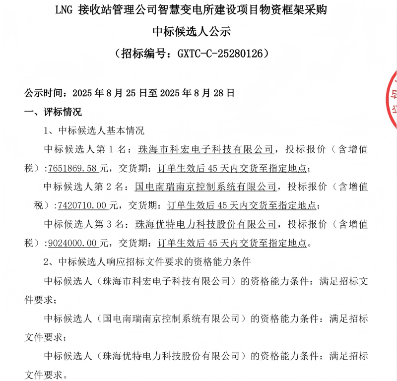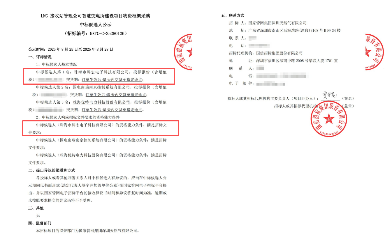 热烈祝贺珠海科宏成功中标国家管网集团--LNG接收站智慧变电所建设项目